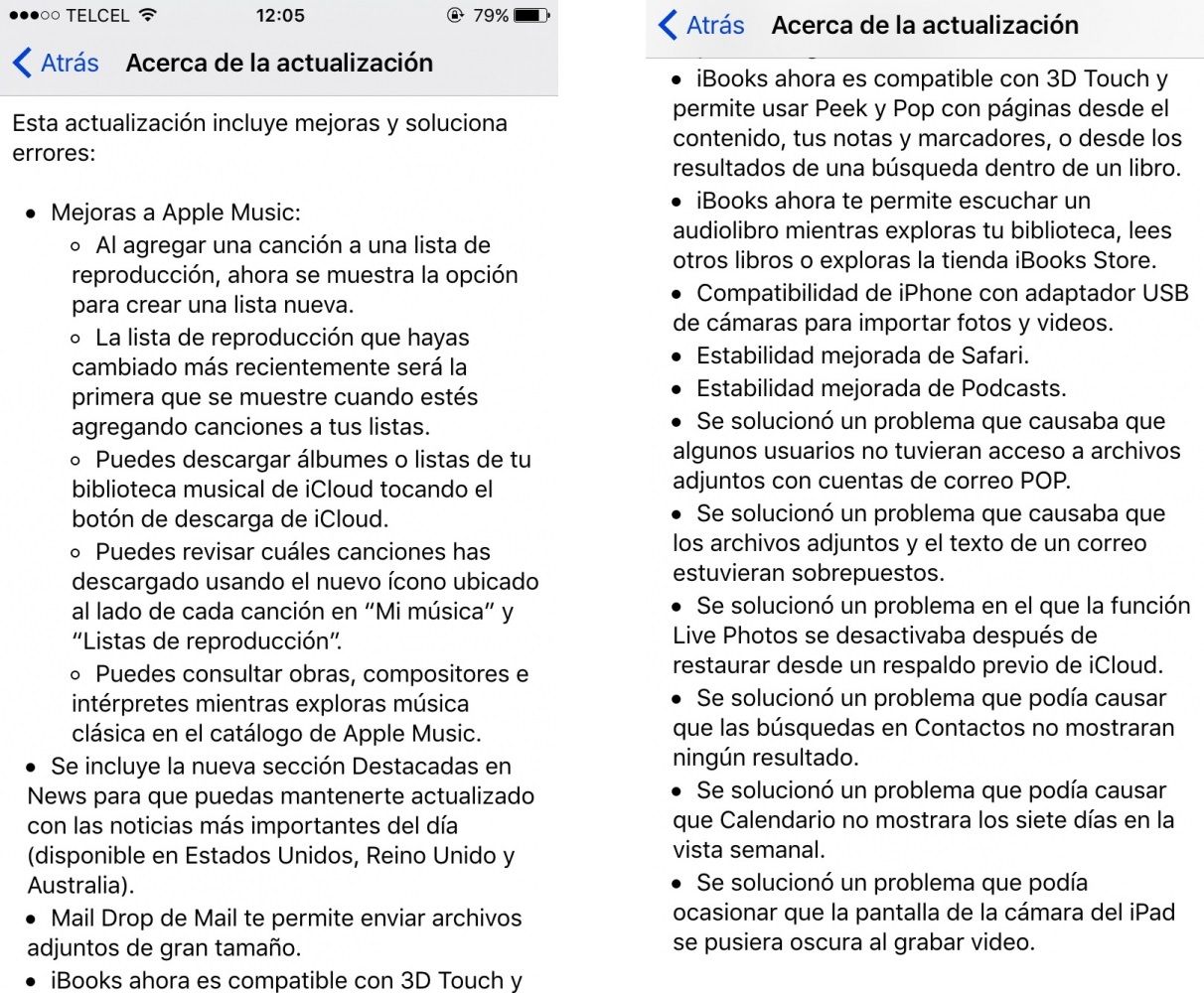 Otra es que ahora iBooks funciona con 3D Touch, compatibilidad del iPhone con el adaptador de cámara USB, mejoras en la aplicación de Podcasts, algunas mejoras de accesibilidad y diferentes correcciones de errores orientadas a las aplicaciones de Apple, entre otras.