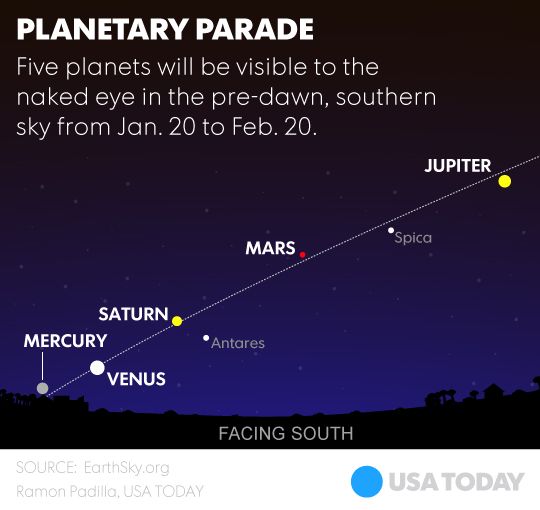 Sin embargo, si no puede ver a los cinco planetas alineados este miércoles, el fenómeno se repetirá cada mañana hasta el próximo 20 de febrero. Claro, siempre y cuando las condiciones climáticas permitan observarlo.