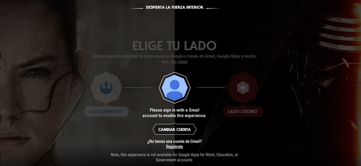 Por supuesto, para activar esta versión con temas de Star Wars, debes tener o crear una cuenta de Gmail.