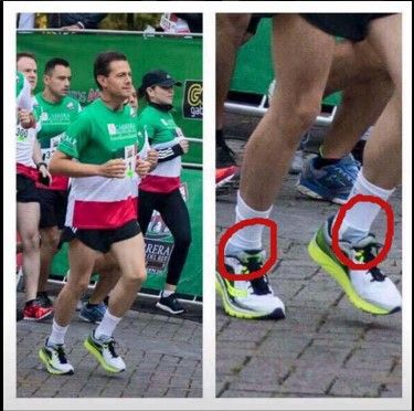 El #calcetagate, protagonizado por el presidente Enrique Peña Nieto y sus calcetas deportivas durante un evento deportivo, pues aparentemente estaban al revés. El mandatario aclaró el asunto con una imagen.