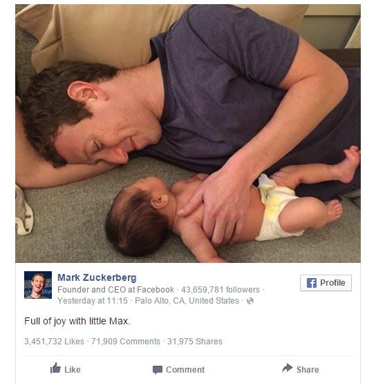 Hoy, Zuckerberg posteó una fotografía de él con su hija en su muro de Facebook. En pocas horas, ha conseguido más de 3 millones de “Me gusta” y se ha compartido poco más de 27 mil veces en la red social.