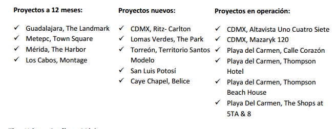 Con tan solo cinco años de antigüedad ya cuenta con una inversión de mil 400 millones de dólares y 14 proyectos alrededor de la república mexicana, generando empleos y atrayendo la inversión de marcas trasnacionales. Actualmente está desarrollando más de 1 millón de metros cuadrados en varios mercados de alto crecimiento en el país, como son: