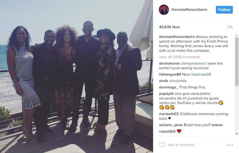 Fue Alfonso Ribeiro, quien daba vida al personaje de Carlton, el que subió la fotografía del reencuentro a Instagram, donde se observan sonrientes a Will, Ashley (Tatyana Ali), Hilary (Karyn Parsons), Carlton, la tía Vivian (Daphne Maxwell Reid) y el entrañable mayordomo Geoffrey (Joseph Marcell).