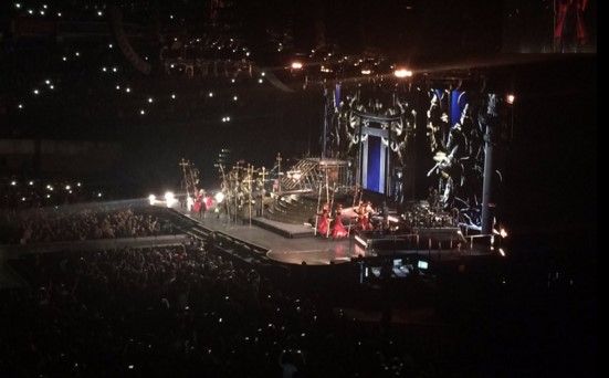 “Pero al ver sus caras y sus ojos, veo amor y me dan la fuerza, siento sus corazones latiendo con el mío. Si son un corazón valiente, aplaudan”, dijo para interpretar “Rebel Heart”, de pie frente a sus seguidores, para luego desaparecer mientras la pista de “Iluminati” se escuchó y bailarines pendían de altos tubos.