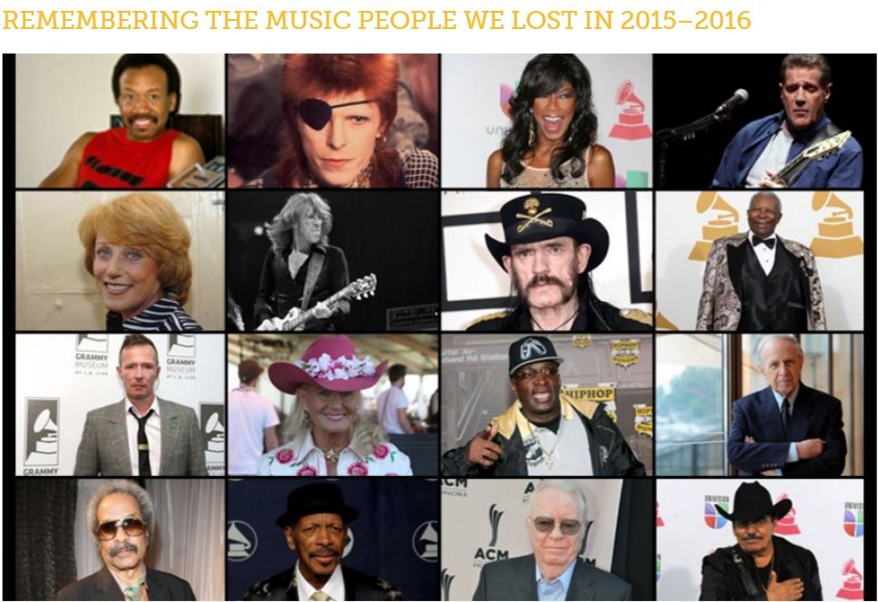 Esa fue la lista de artistas y profesionales de la industria de la comunidad musical que perdió la vida en 2015 y  en lo que va de 2016.