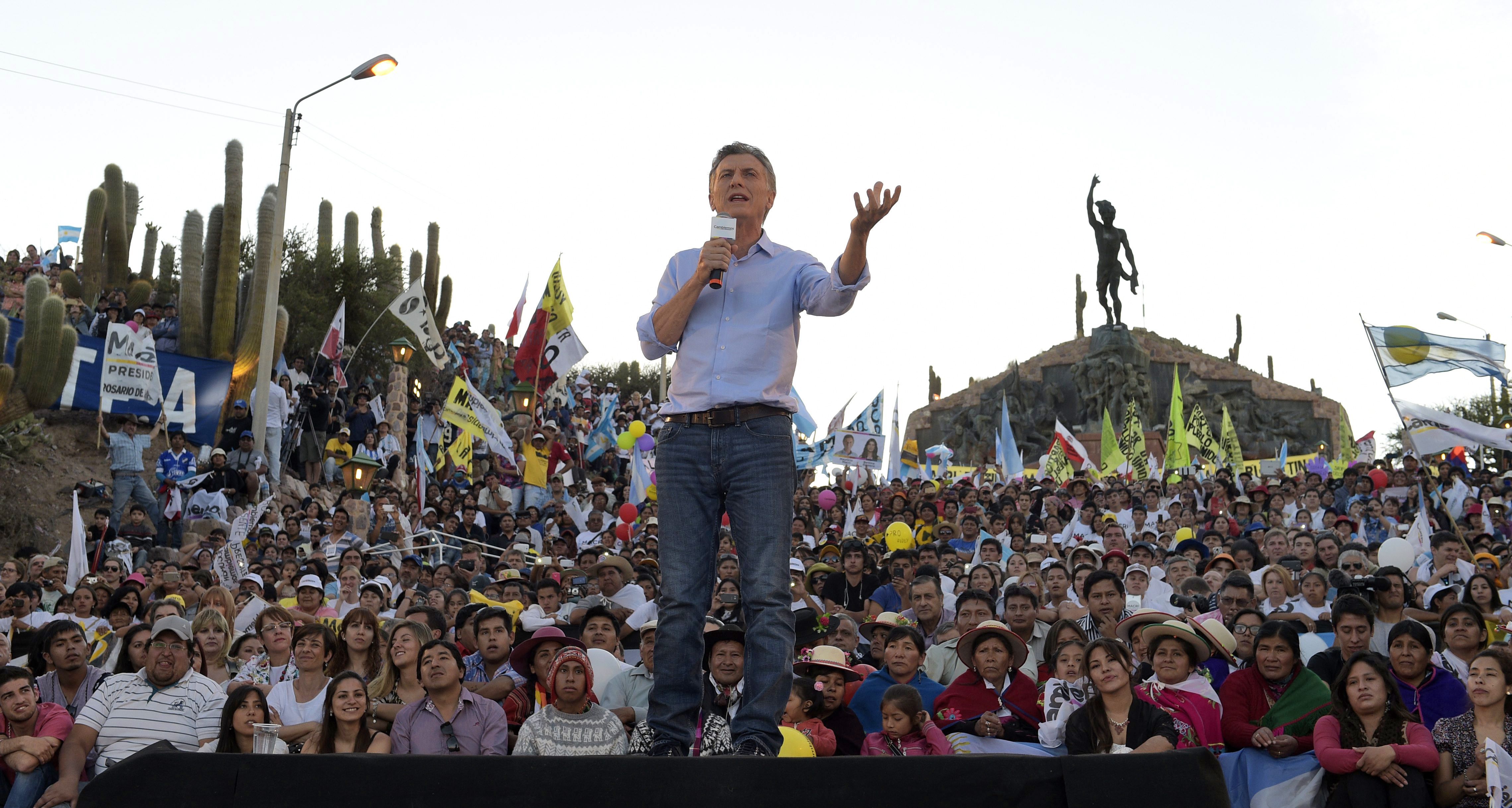 Desde un patrimonio histórico de la humanidad en Humahuaca, muy cerca de la frontera con Bolivia, Macri ofreció un encendido discurso ante miles de seguidores de su partido de derecha Propuesta Republicana (PRO).