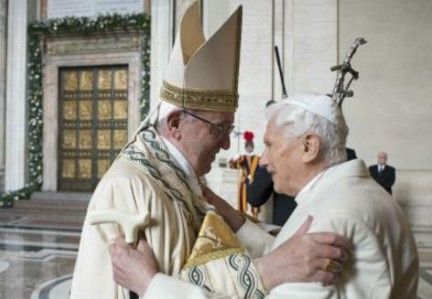 El Papa emérito Benedicto XVI acompañó hoy a su sucesor Francisco en la apertura de la “puerta santa”, con lo cual quedó inaugurado el Jubileo Extraordinario de la Misericordia.