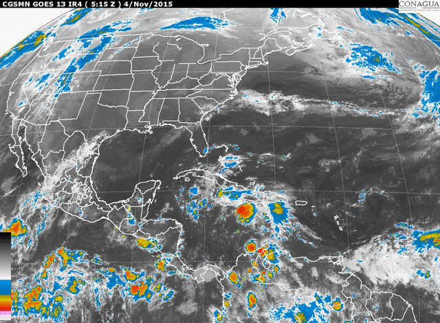 En la Península de Yucatán dominará cielo medio nublado a nublado, 80 por ciento de probabilidad de lluvias fuertes en Quintana Roo y de menor intensidad en Yucatán y Campeche.
