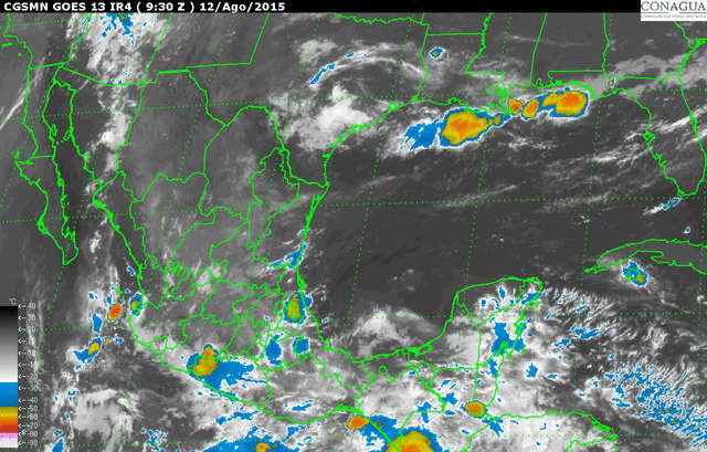 Por otra parte, el Meteorológico explicó que un canal de baja presión extendido sobre el noroeste, occidente y centro del país, asociado con la entrada de humedad del Océano Pacífico y Golfo de México, causará lluvias fuertes en Jalisco, Michoacán, Guerrero, Estado de México, Distrito Federal y Puebla.