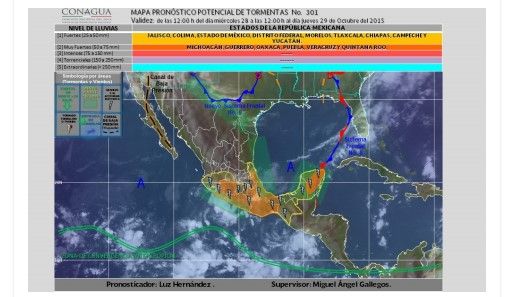 Esto causará lluvias muy fuertes en nuevo León y Tamaulipas; fuertes en Sonora, Chihuahua, Coahuila, San Luis Potosí, Zacatecas, Durango, Veracruz, Puebla, Hidalgo y Querétaro; así como de menor intensidad en Tlaxcala.