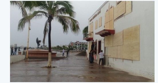 En Puerto Vallarta, restaurantes y tiendas protegían o entablaban las ventanas y los vecinos se apresuraban a acudir a las tiendas para hacer compras de último momento antes de la tormenta.