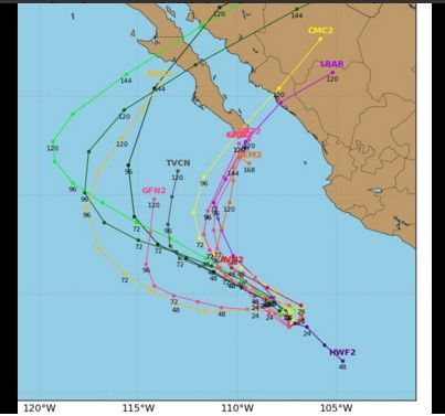 De acuerdo con el pronóstico y evolución, se espera que este sistema mantenga su rumbo hacia el norte y siga intensificándose gradualmente y al final de esta tarde se intensifique a tormenta tropical, con el nombre de Rick.